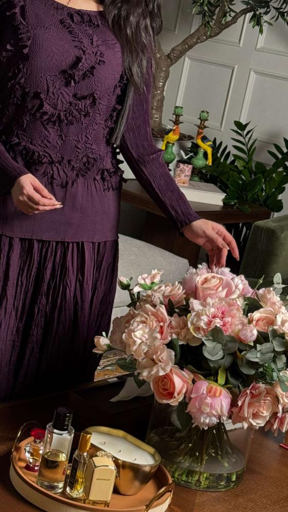 وصف المنتج :النوع : طقم تيور .الوصف : طقم تيور قطعتين خامة اللنن الكورية البلوزة استرتش مريحة على اللبس والتنور بكسرات اللون الليلكي.فيديو توضيحي :