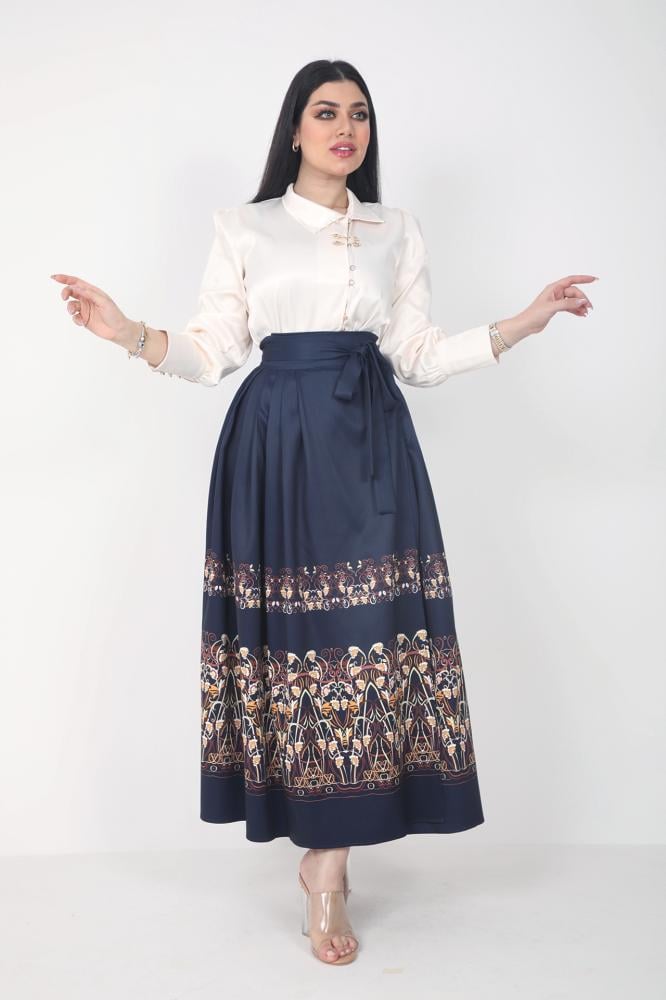 وصف المنتج :النوع : طقم تيور نسائي فخم .الخامه : البلوزه حرير ساتان .الوصف : طقم تيور فخم التنور قصه لف مزينه بطبعات من تحت .فيديو توضيحي :
