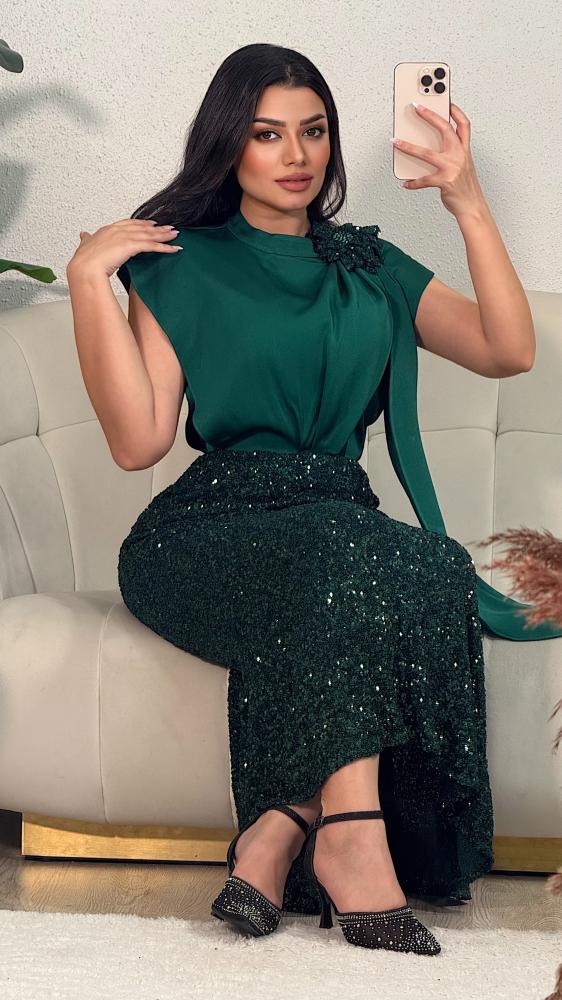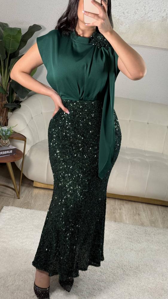 فستان سهرة فخم وراقي مزين بكلفة الوردة
