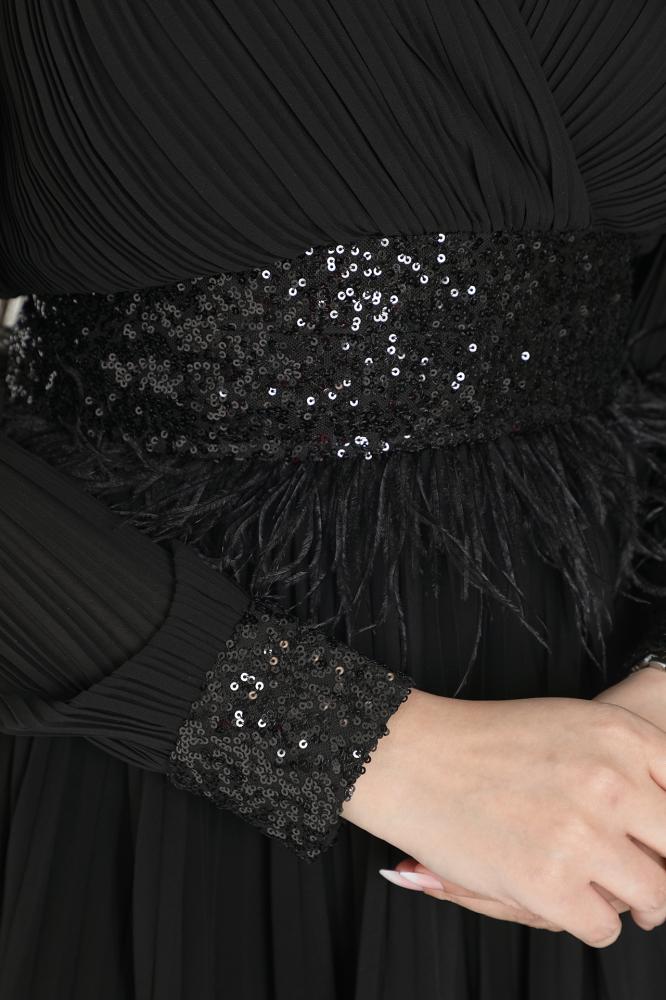 • الوصف : فستان سهرة مع ترتر مزين بالريش .