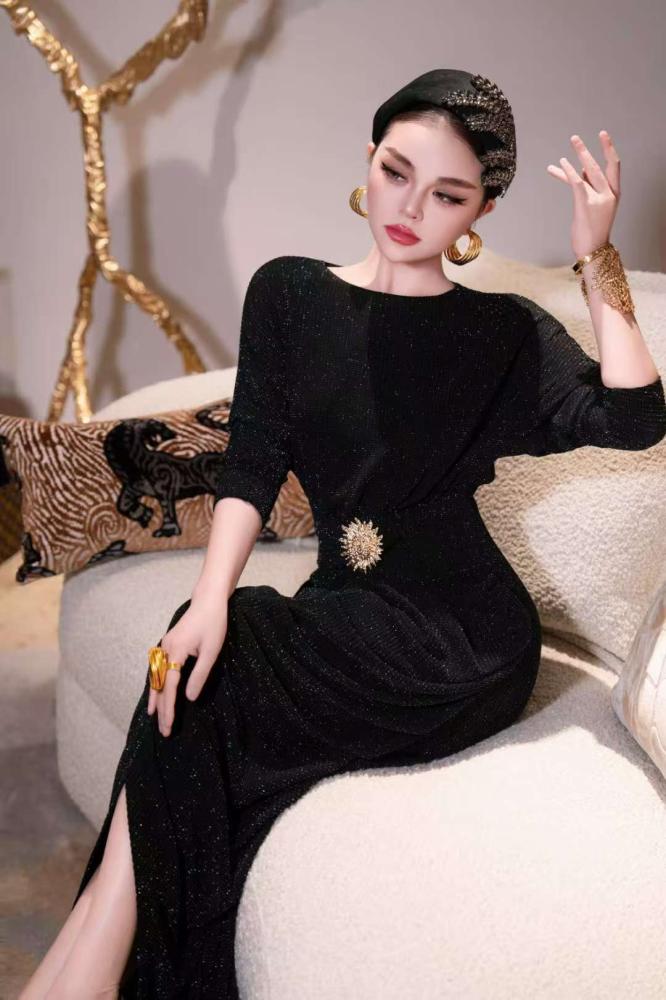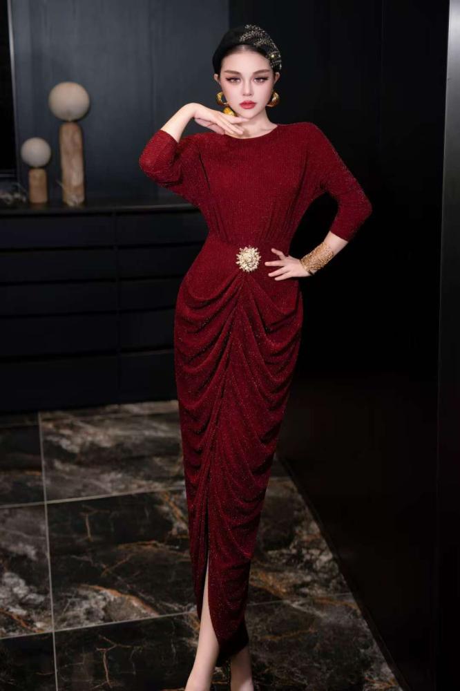 وصف المنتج :الوصف : فستان طويل سهرة انيقخامة استرتش لاميه قصة ماسكة على الجسم ومزمومة مزين بالكلفة الذهبية الاسودالاحمرفيديو توضيحي :