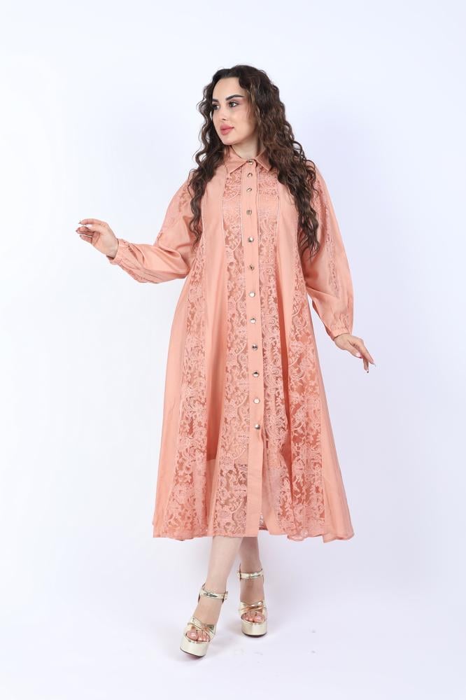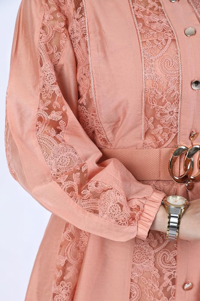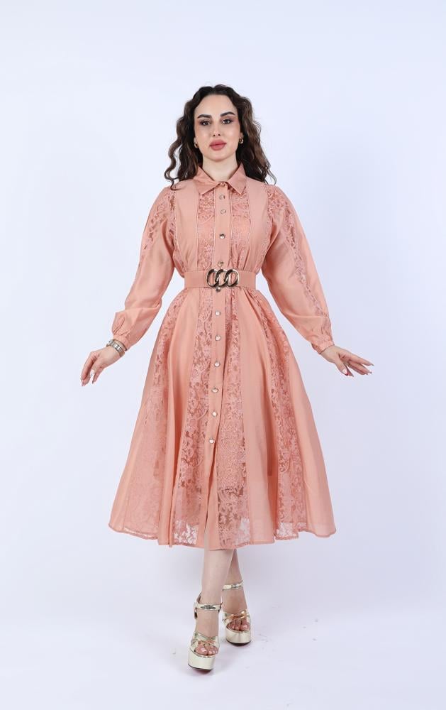 وصف المنتج :النوع : فستان دانتيل .الخامة : كتان .الوصف : فستان فخم دانتيل مزين بحزام على الخصر .فيديو توضيحي :