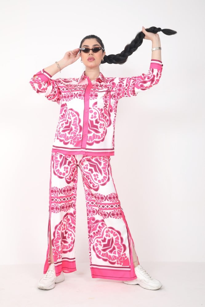فيديو توضيحي : وصف المنتج :النوع : طقم بدلة بناتي .الخامة : كرب حرير .الوصف : طقم بدله مشجر قصه واسعة اوفر سايز .
