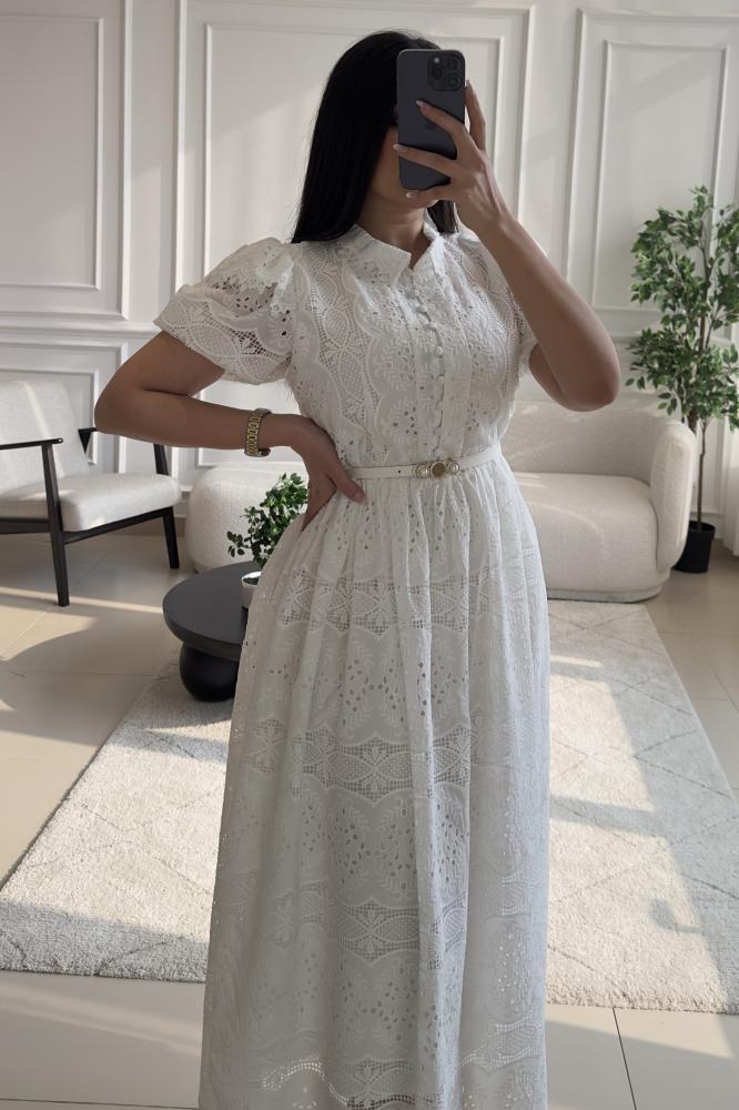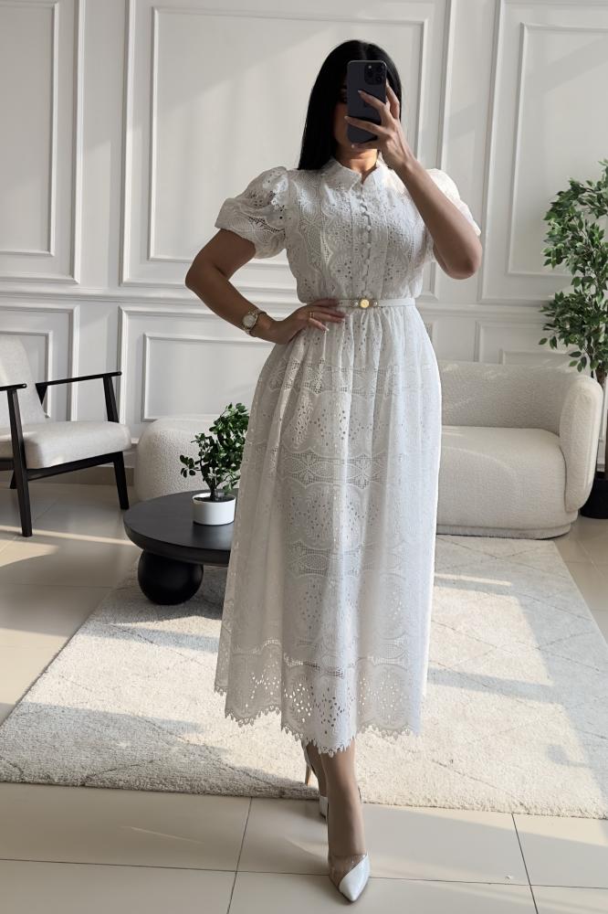 • الوصف :الفستان الانيق بقصه اكمام بوووف مع حزام انيق على الخصر .