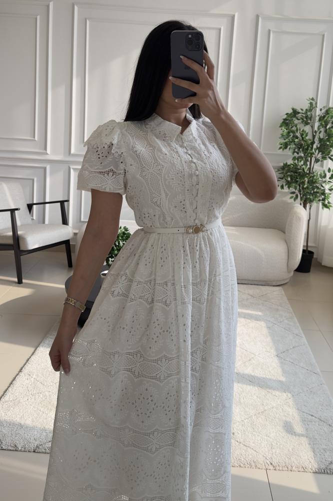 فستان انيق بقصه اكمام بوووف مع حزام انيق على الخصر