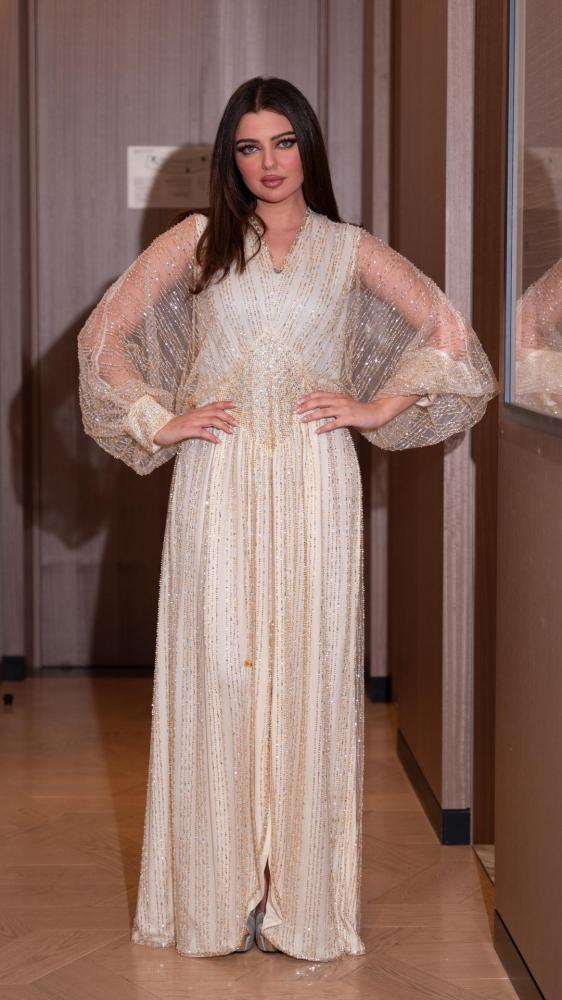 وصف المنتج :النوع : فستان مناسبات .الوصف : فستان طويل سهرة فخم مزين بخطوط التطريز مع الكريستال وقصة اكمام واسعة اللون الاسود .فيديو توضيحي :