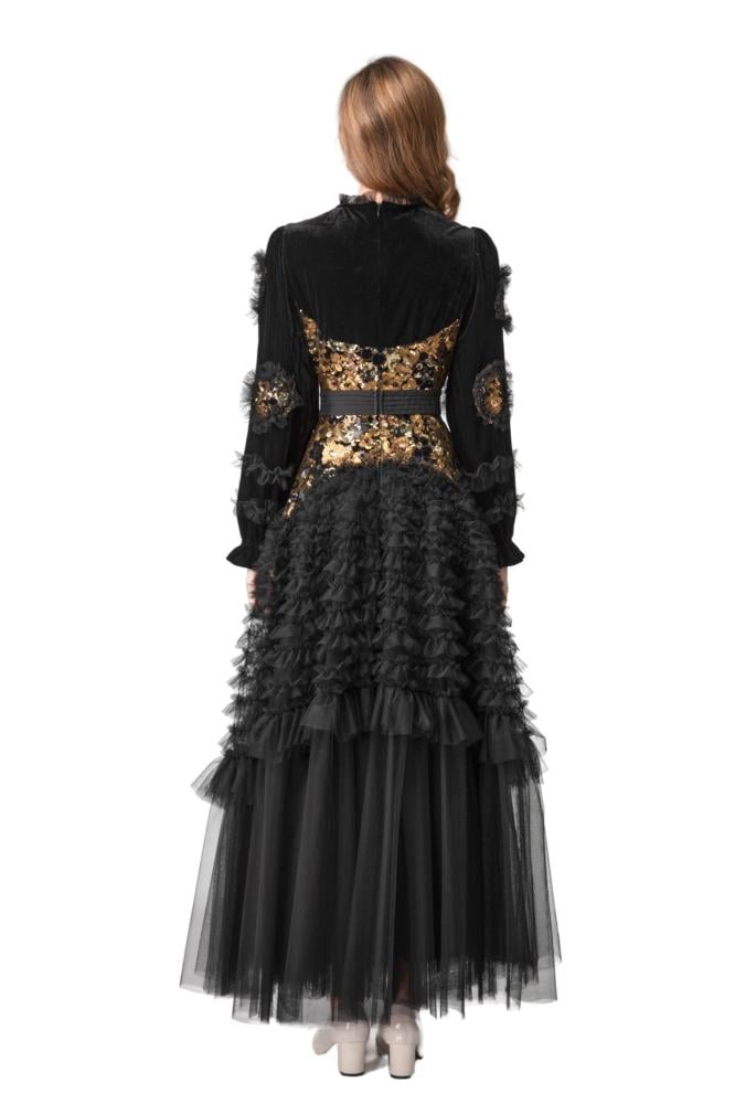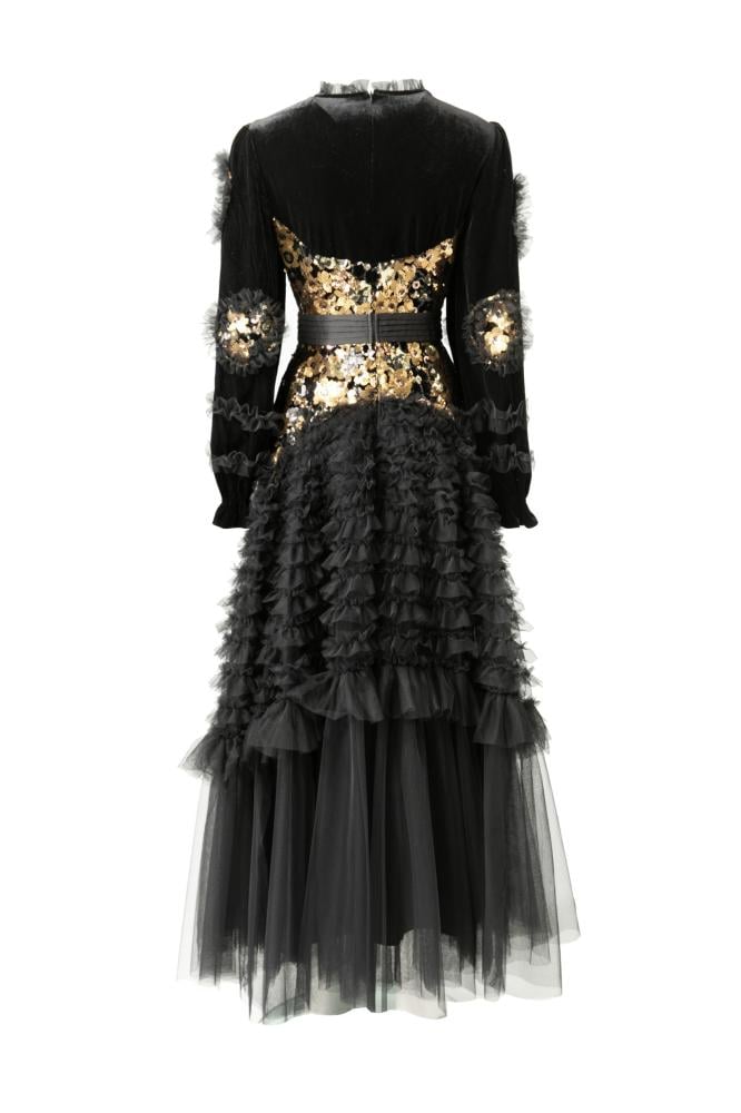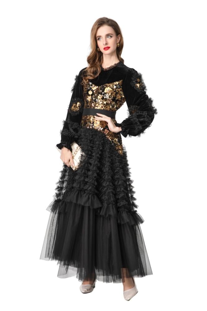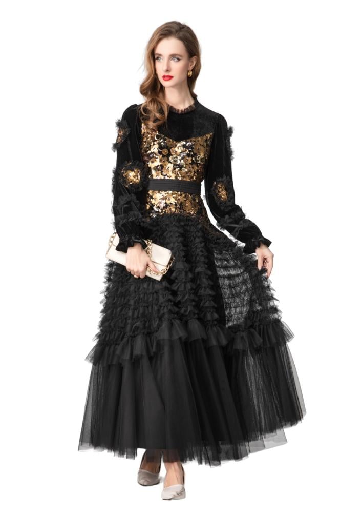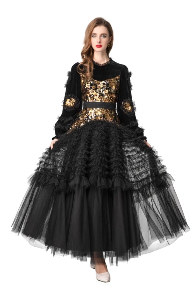 وصف المنتج :الوصف : فستان طويل سهرة فخمالصدر مخمل مع الترتر المطرزومن تحت تل طبقات قصة كلووشاللون الاسودفيديو توضيحي :