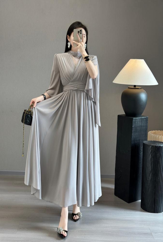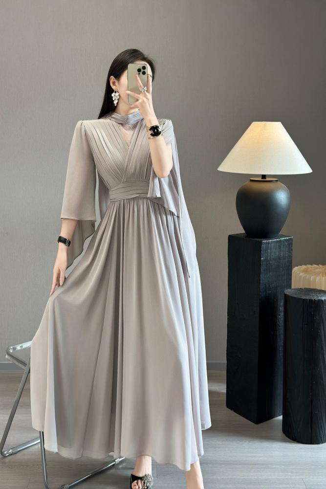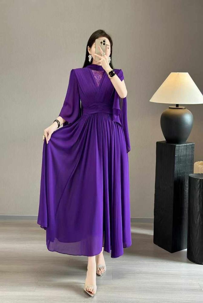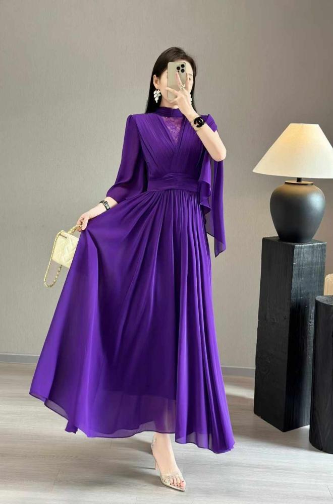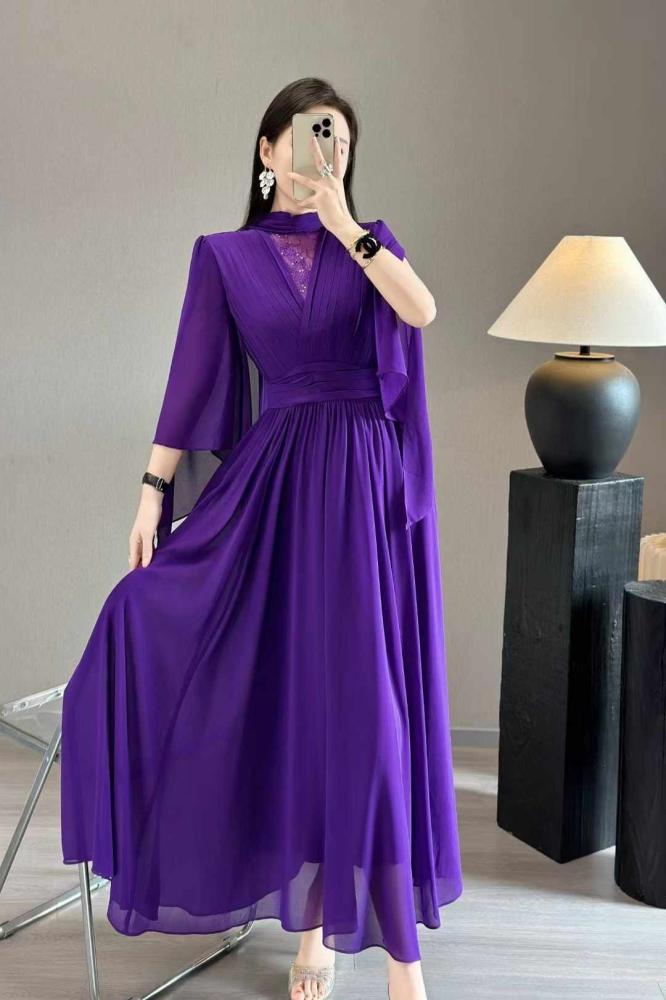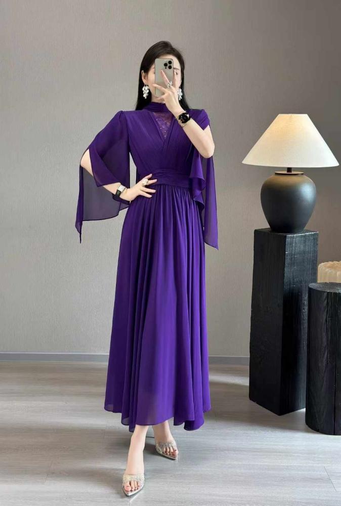 • الوصف : فستان طويل للمناسبات ناعم والصدر مطرز اللون الموف .